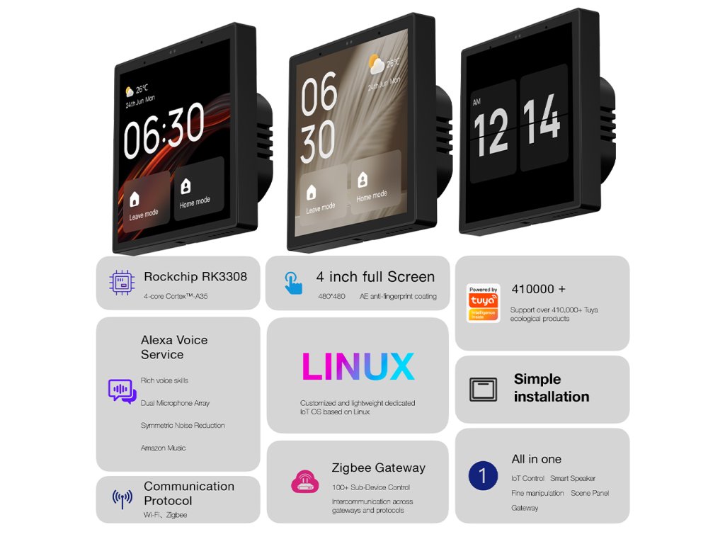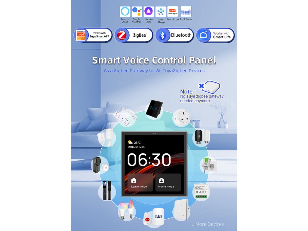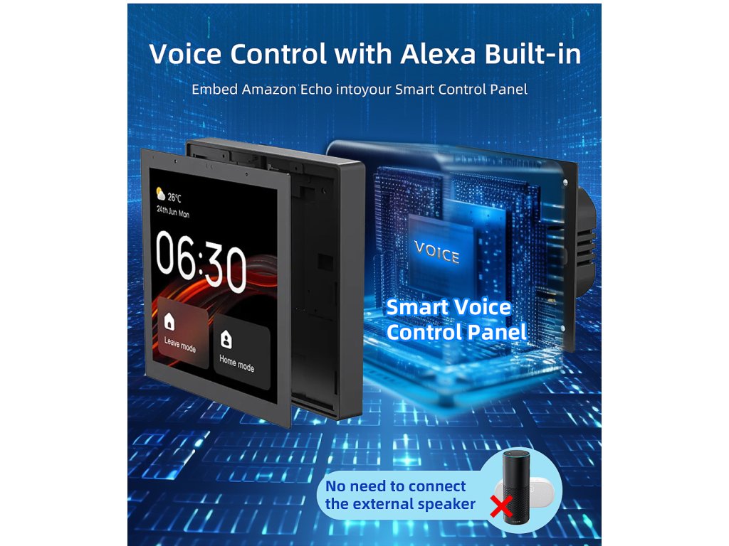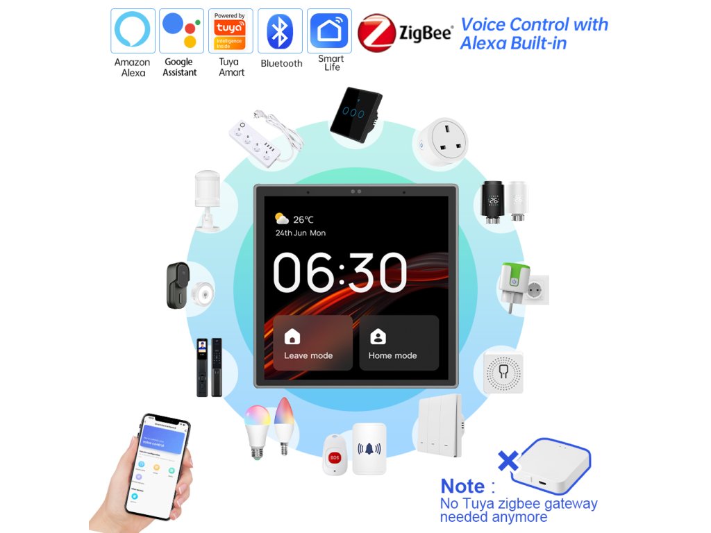 Tento inteligentný panel predstavuje elegantné a praktické riešenie pre každého, kto chce mať svoju domácnosť plne pod kontrolou. Vďaka kombinácii hlasového asistenta Alexa, ZigBee brány a prehľadného dotykového displeja ponúka jednoduché a pohodlné ovládanie celej škály zariadení.